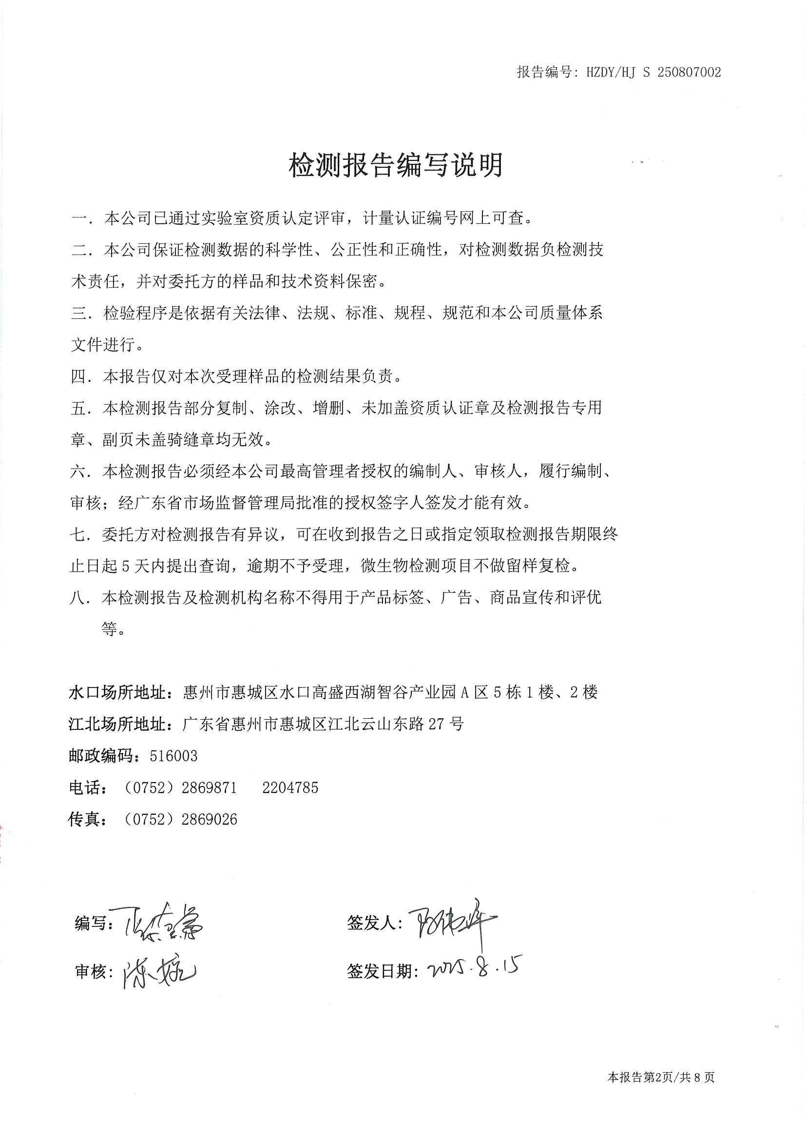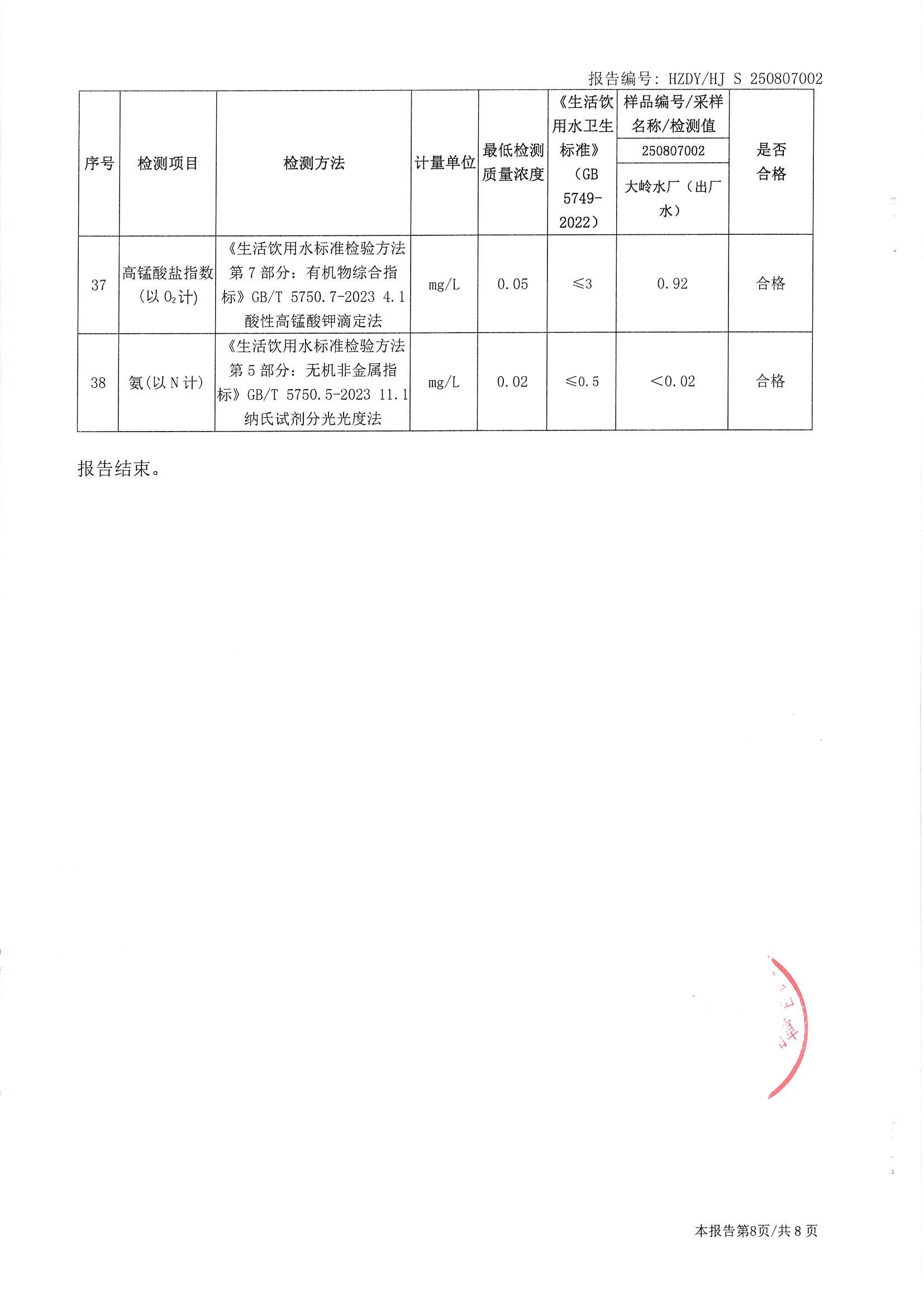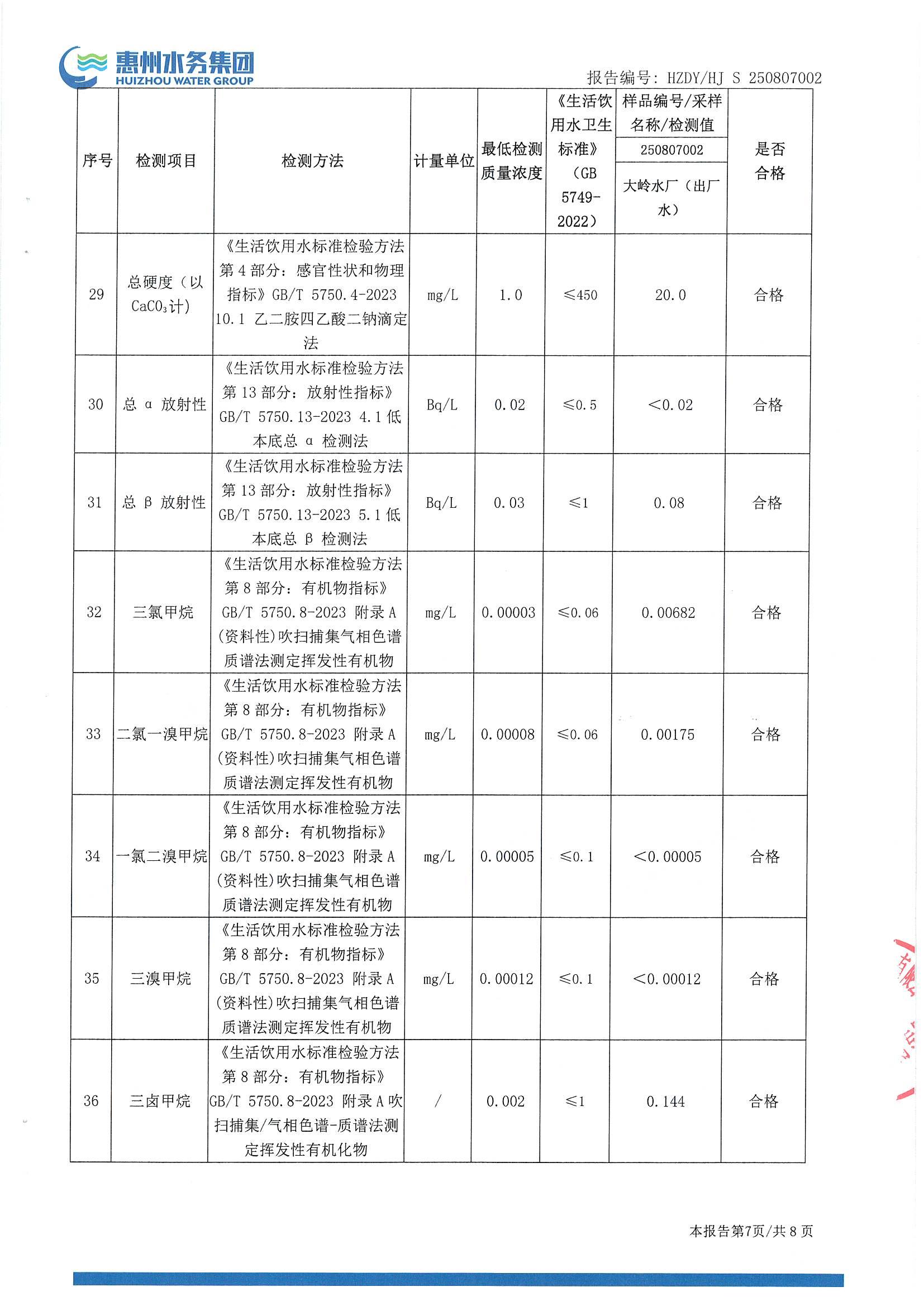 2025年8月份水质检测报告(大岭水厂)