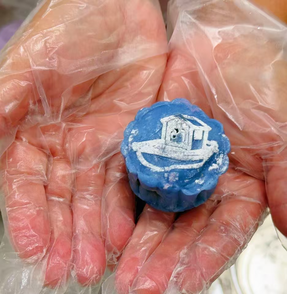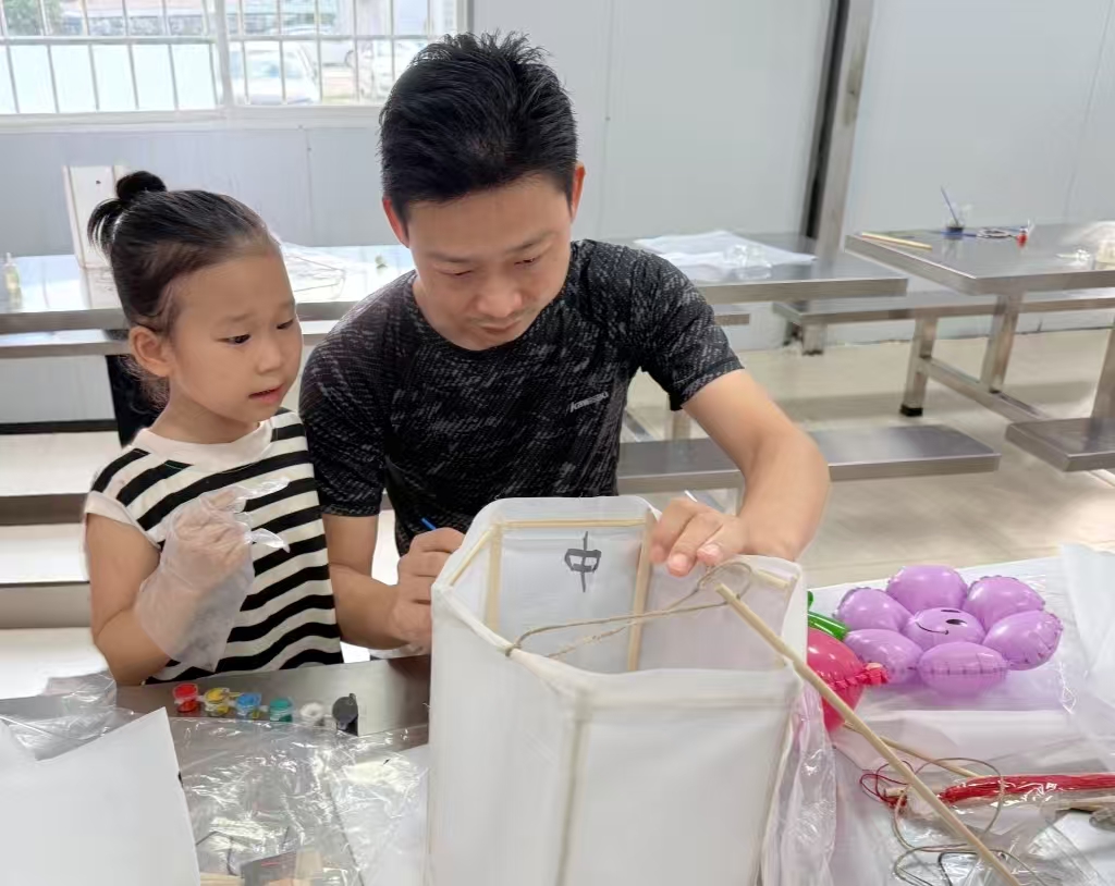 活动现场,22组家庭化身为“美食工匠”,开启了冰皮月饼DIY之旅,从揉面、包馅到压模,亲子间的默契协作下,一枚枚印有“平山自来水厂”“城南水塔”“水泥船泵房”等公司发展史上标志性建筑物图案的月饼在掌心悄然成型。在活动的另一侧,二十余盏创意灯笼正悄然点亮,职工家庭以公司发展历程为灵感,利用材料包中的竹篾、彩笔等素材,设计出“惠东供水60周年”“中秋快乐”等特色灯笼,将对企业发展的美好祝福融入其中。最终,所有家庭自制的月饼和灯笼作为活动纪念品被带回家中,更成为传递企业温情的独特载体。