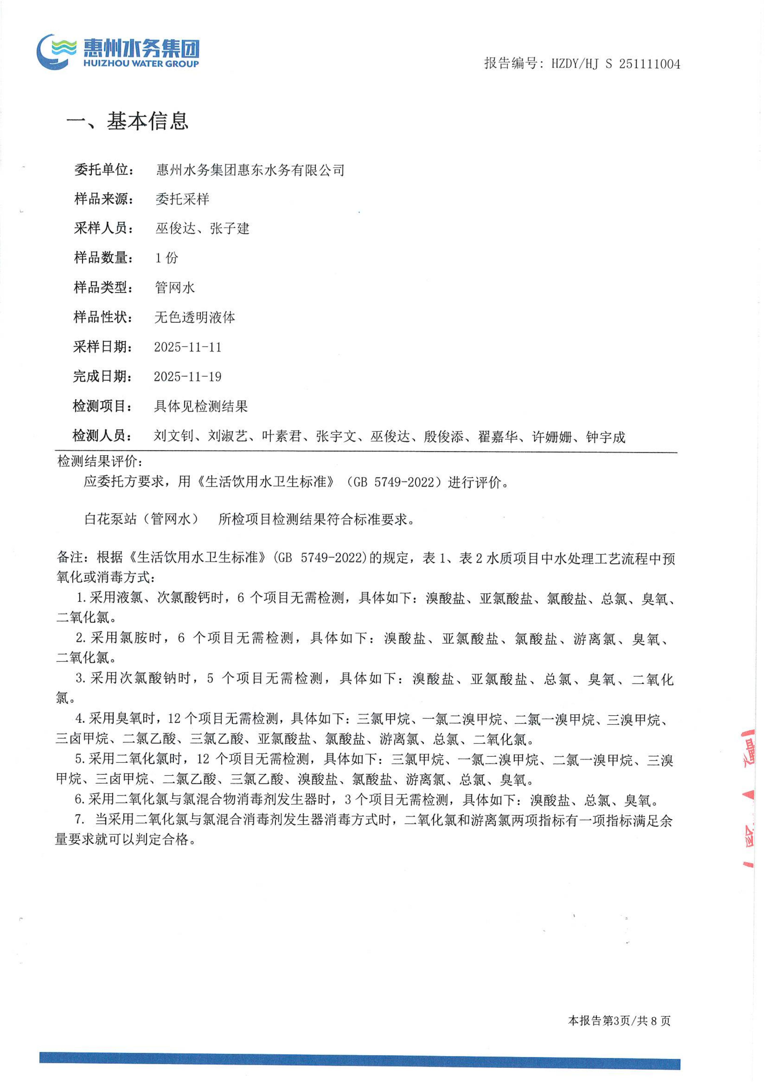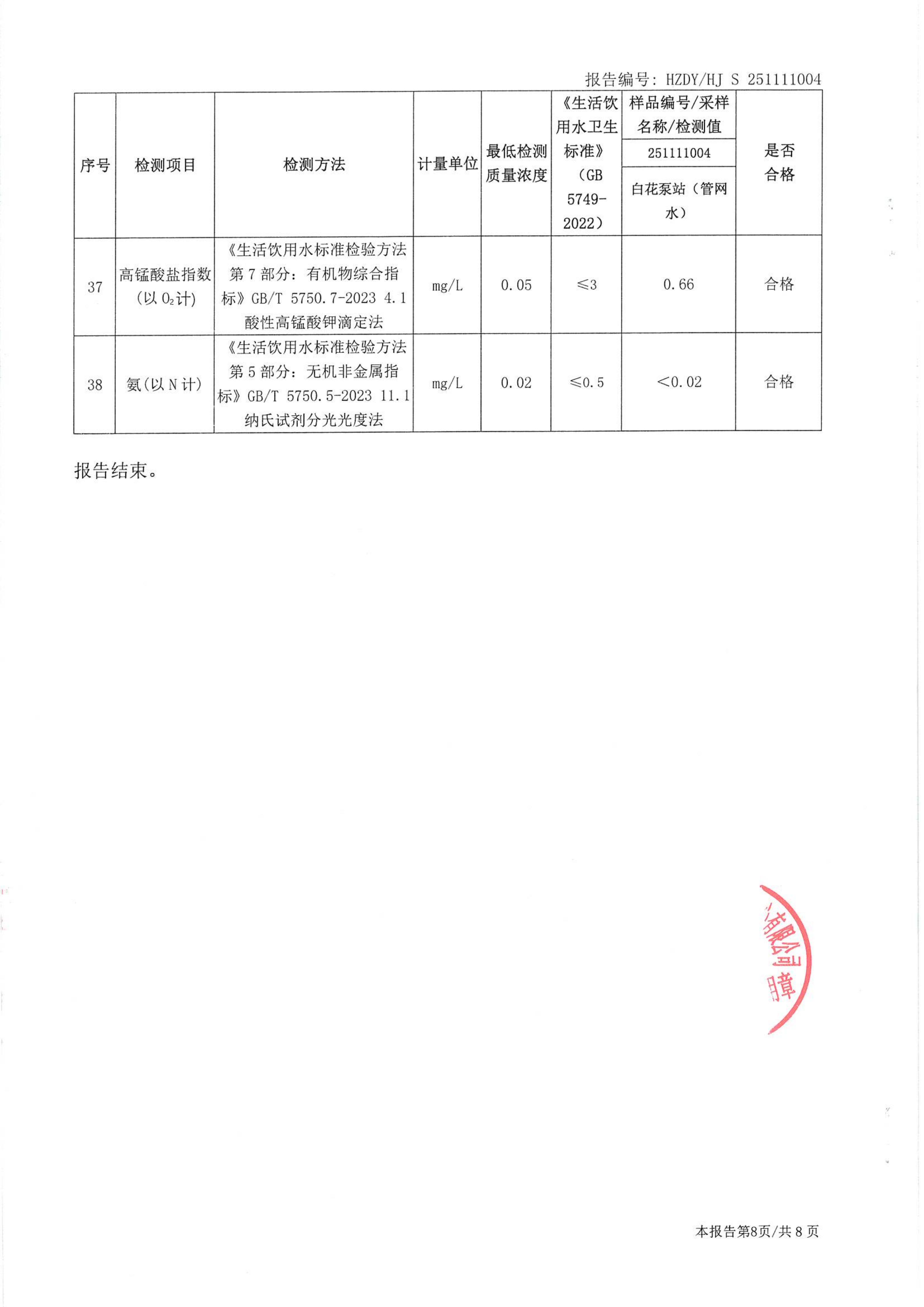 2025年11月水质检测报告(白花泵站管网水)